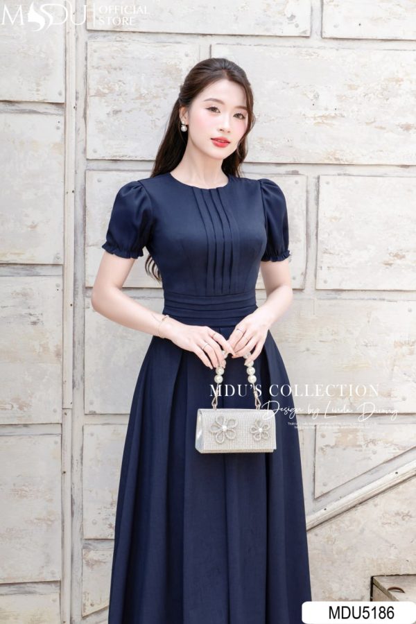 Design Highlights: MDU5186 is the perfect blend of timeless elegance and modern charm. This midi dress in a rich navy hue is designed to flatter the silhouette with its structured yet feminine shape. The delicate puffed sleeves and pleated details create a refined, classy look, while the knee-length cut offers comfort and freedom of movement. The dress features a beautifully tailored waist, accentuating the curves, and a flowy skirt that gracefully falls to the hem. Perfect for upscale gatherings, casual chic outings, or a day at the office, this dress exudes confidence and poise.