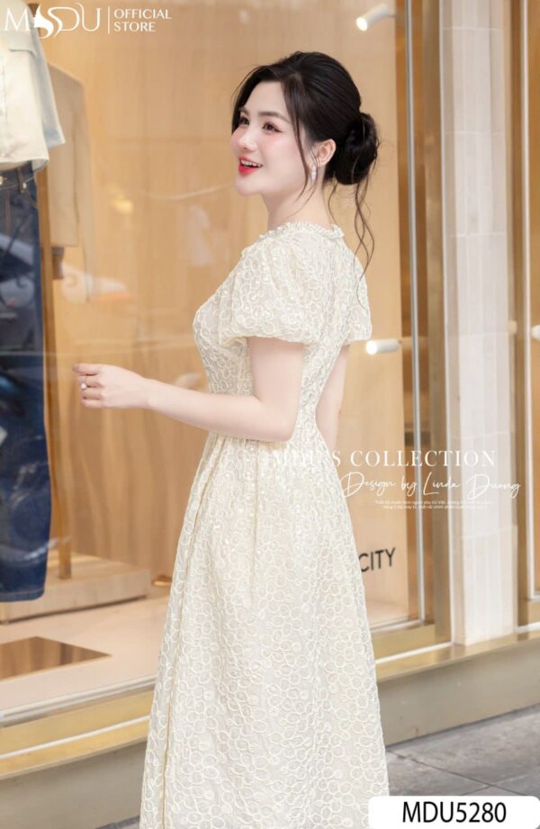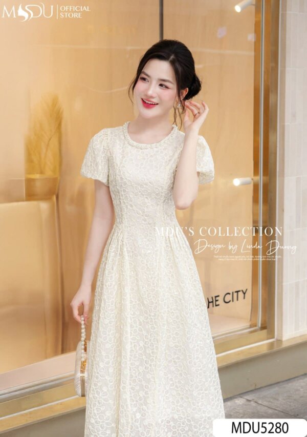 The MDU5280 is the epitome of timeless elegance, blending delicate lace with a fresh design that breathes new life into classic sophistication. Featuring puffed sleeves and a figure-flattering silhouette, this dress exudes grace with every step. The delicate lace pattern is both soft and intricate, with a romantic appeal. The gentle flare of the skirt creates a soft and elegant flow that enhances the dress’s femininity. Whether it’s a day at the office or a semi-formal event, this dress is an ideal choice. The subtle detailing adds texture and dimension, making it perfect for chic, fashionable moments.