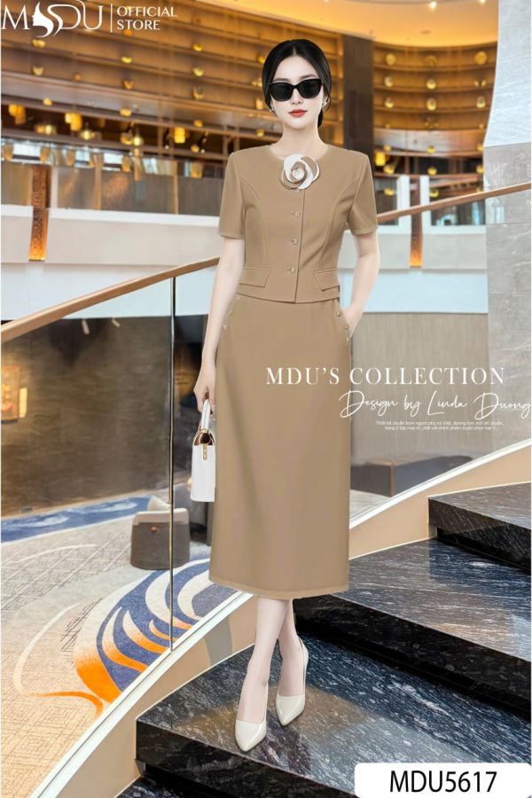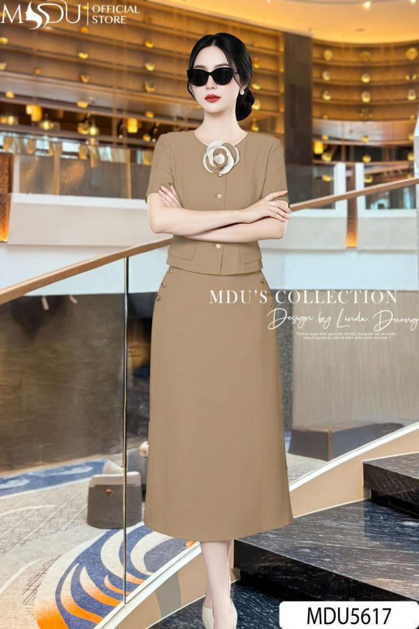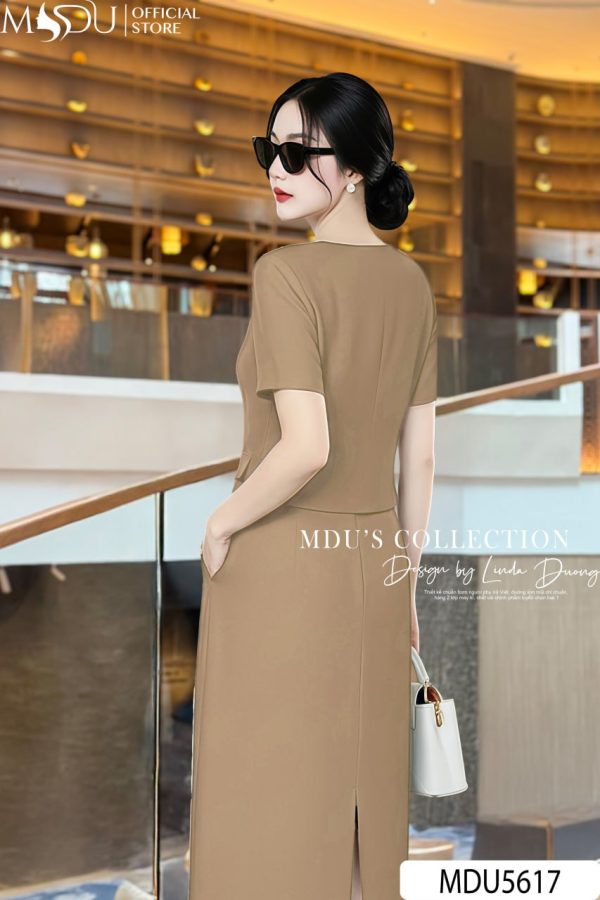 Design Highlights: Exuding timeless sophistication, this midi dress in a warm beige hue is the perfect blend of structure and elegance. Featuring a buttoned waist and delicate pockets that enhance its refined silhouette, this dress gracefully follows the natural curves without being restrictive. The soft fabric and clean lines create a flattering, modern fit, making it the ideal choice for upscale events, professional settings, or sophisticated luncheons. The classic design adds a touch of effortless chic to your wardrobe.