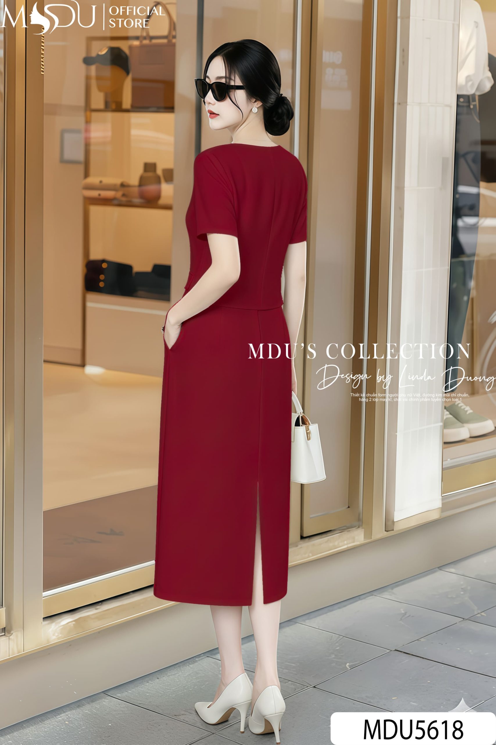 Design Highlights: This midi dress exudes refined sophistication with its deep burgundy hue, tailored to perfection for a polished look. The structured fit at the waist beautifully emphasizes your natural curves while the smooth, buttoned detailing adds a chic and elegant touch. The subtle slit at the bottom allows graceful movement, while the modern cut ensures a flattering silhouette. Ideal for both formal and semi-formal occasions, this dress blends classic beauty with contemporary charm.