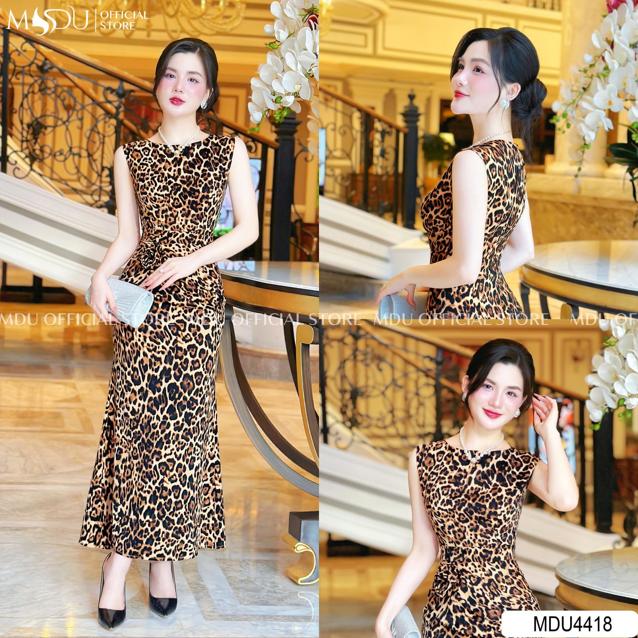Design Highlights: The MDU4418 dress makes a bold statement with its sleek leopard print design. The figure-hugging silhouette enhances the body’s natural curves, while the chic knot detailing at the waist creates a flattering shape. The dress features a round neckline and cap sleeves, offering a sophisticated yet modern look. Crafted in satin, it drapes beautifully, providing both comfort and elegance. Ideal for evening parties, formal events, or upscale gatherings, this dress exudes confidence and sophistication.