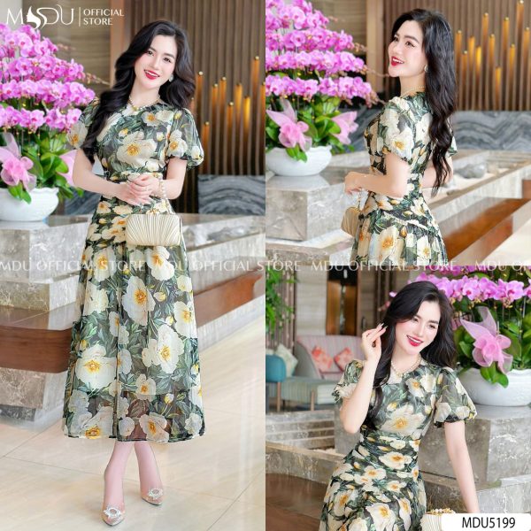 Design Highlights: This stunning midi dress is a blend of chic and elegance. The floral print adds a fresh and vibrant feel, while the sheer organza fabric creates a soft, romantic touch. The fitted waistline accentuates the silhouette, and the flutter sleeves bring a feminine charm. Ideal for both day and evening wear, this dress exudes grace, making it a perfect choice for gatherings, garden parties, or casual events. The delicate floral pattern adds sophistication, while the transparent fabric gives the dress an airy feel.