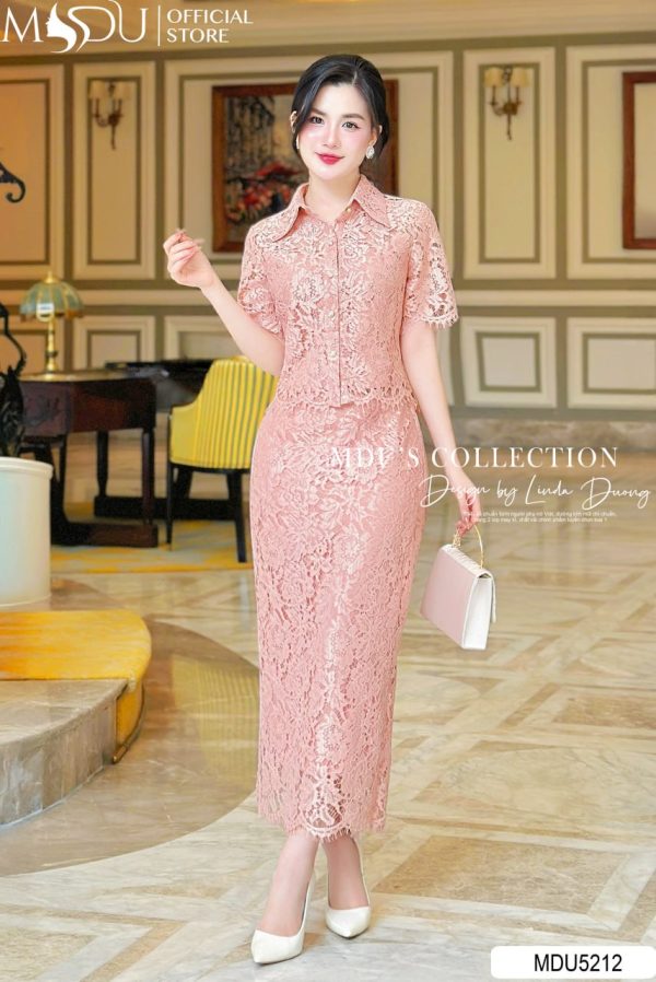 Design Highlights: This midi dress embraces the elegance of lace with a sophisticated design that radiates timeless beauty. The light pink tone is subtle yet striking, creating an effortless feminine allure. The structured design includes a fitted waist that enhances your curves, while the flared hem adds fluidity and grace. The soft, delicate lace material provides texture, offering both comfort and visual appeal, making it a perfect choice for formal events or elegant gatherings.
