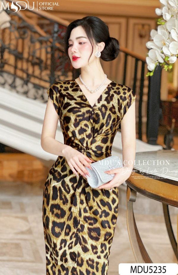 Design Highlights: The MDU5235 dress is a statement piece with its striking leopard print satin fabric. The flattering wraparound design cinches the waist, accentuating feminine curves while maintaining an elegant silhouette. The dress features a deep V-neckline and a thigh-high slit, adding a touch of sultriness. The soft, silky satin fabric drapes beautifully, while the sophisticated leopard print brings an element of wild sophistication. Ideal for cocktail parties, elegant events, or dinner dates, this dress brings both boldness and grace.