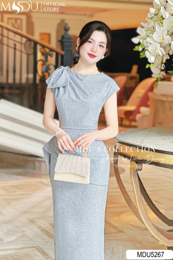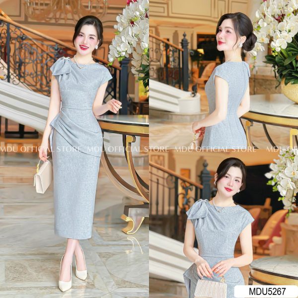 The MDU5267 is a sophisticated grey midi dress designed to impress. Featuring a unique draped detail on the shoulder, this dress combines elegance with a contemporary touch. The fitted waist enhances feminine proportions, while the sleek silhouette elongates the figure beautifully. The dress is finished with a soft bow detail on the shoulder, adding a refined yet playful flair. Ideal for formal occasions, evening events, or professional settings, this dress offers both style and comfort.