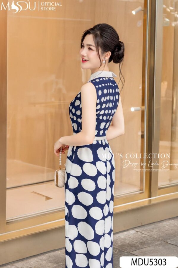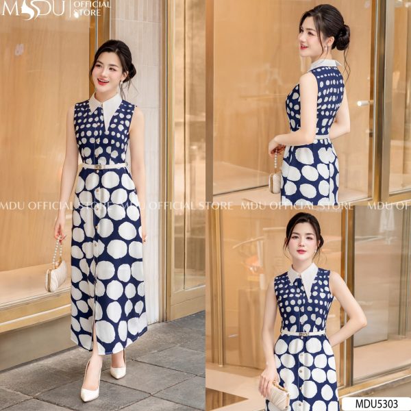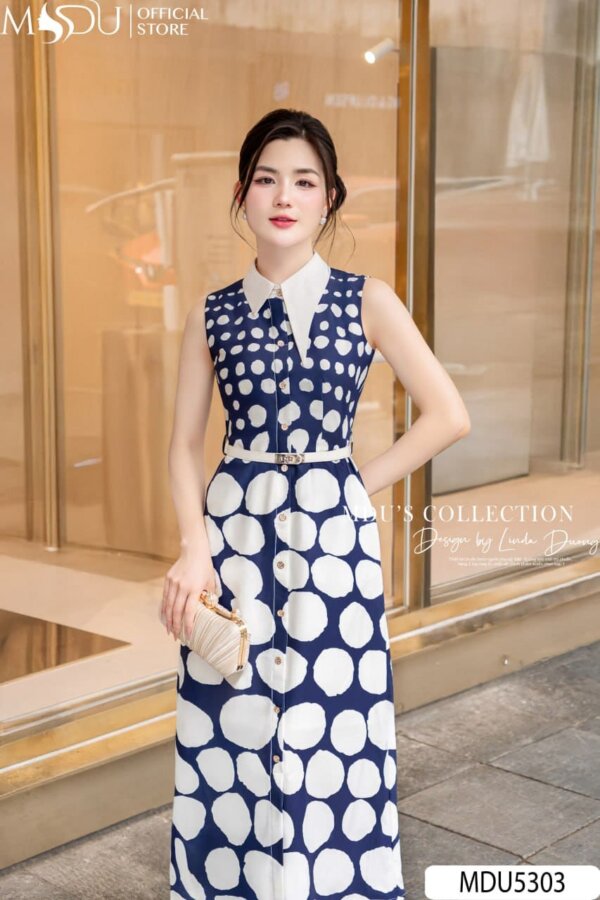 MDU5303 – CHIC NAVY AND WHITE POLKA DOT MIDI DRESS