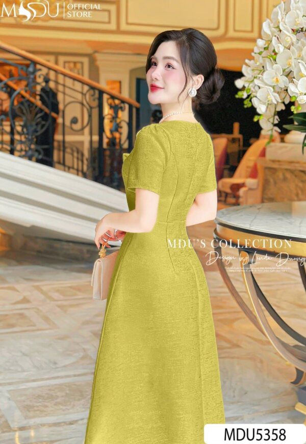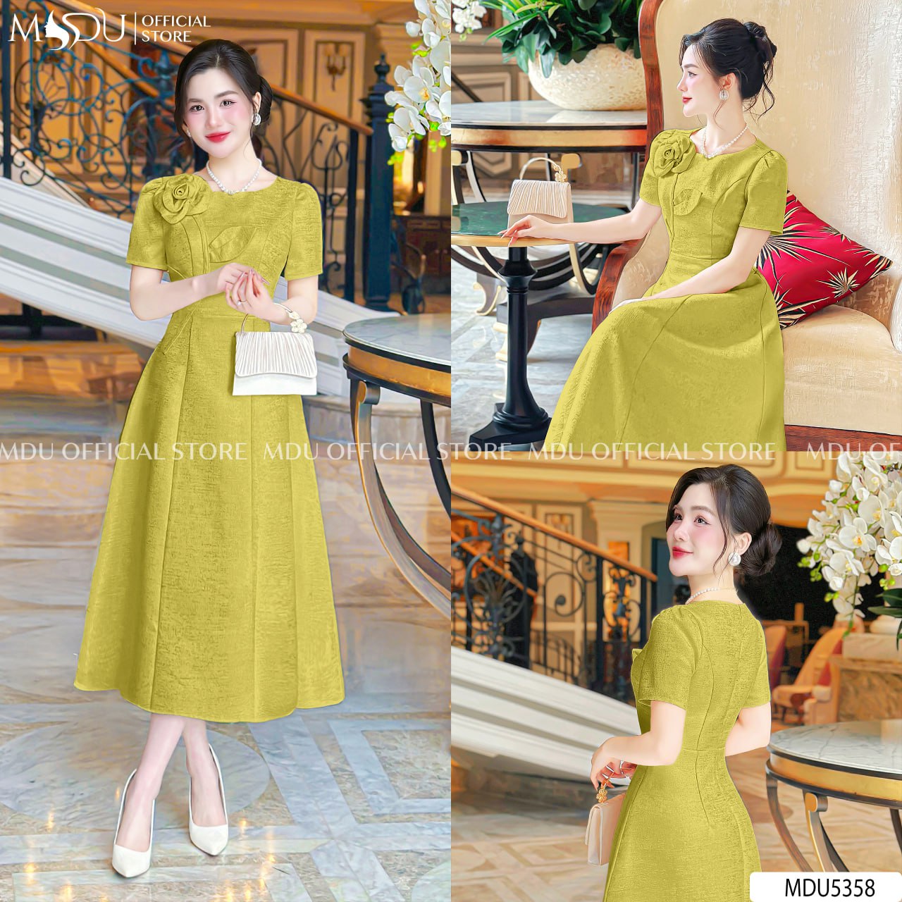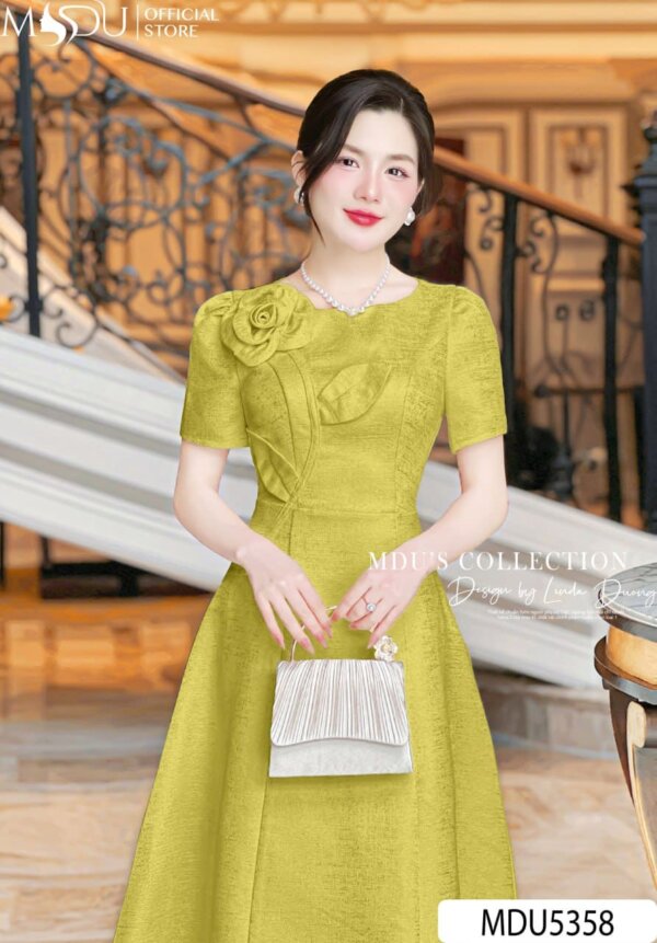 MDU5358 – CHARMING MUSTARD YELLOW MIDI DRESS WITH FLORAL DETAIL