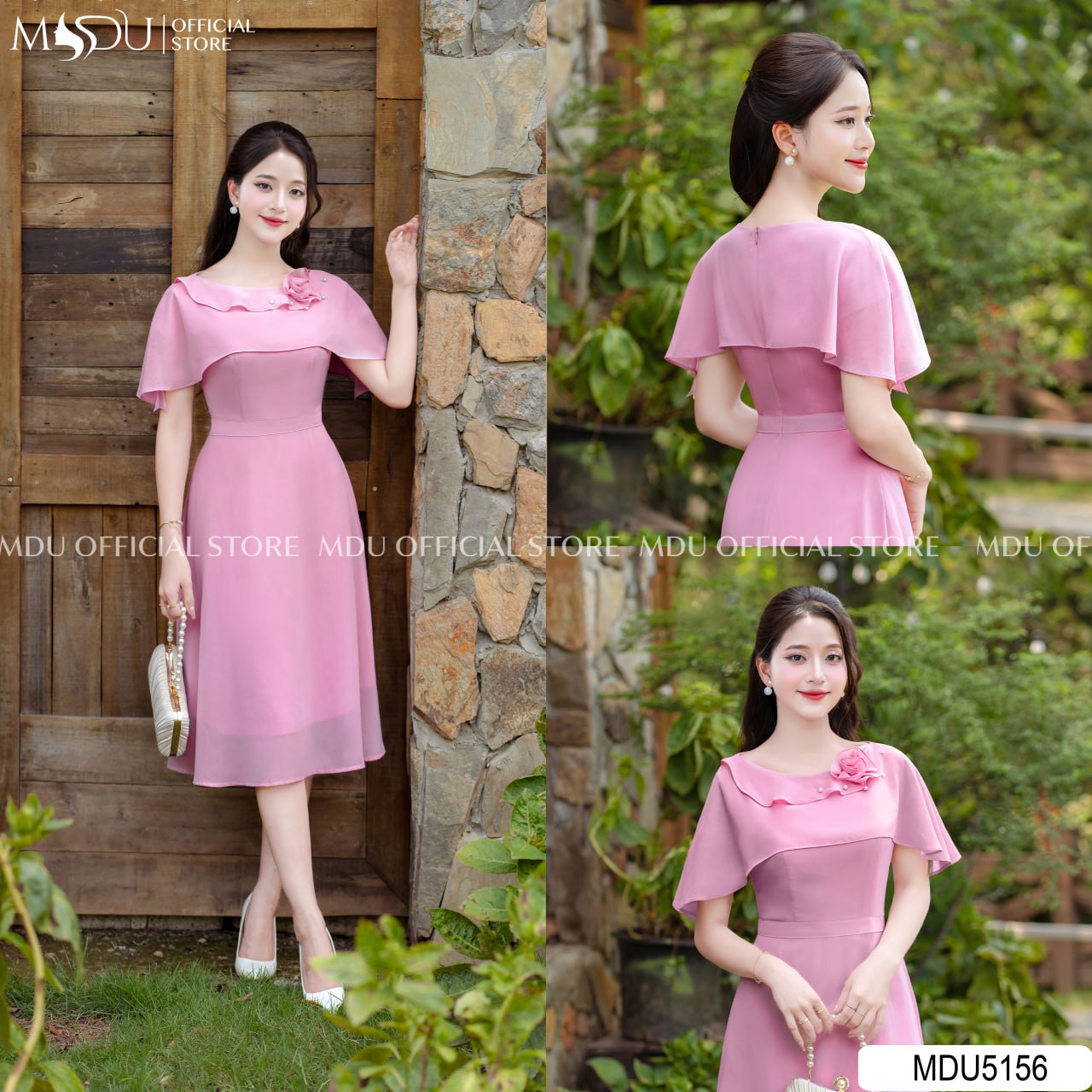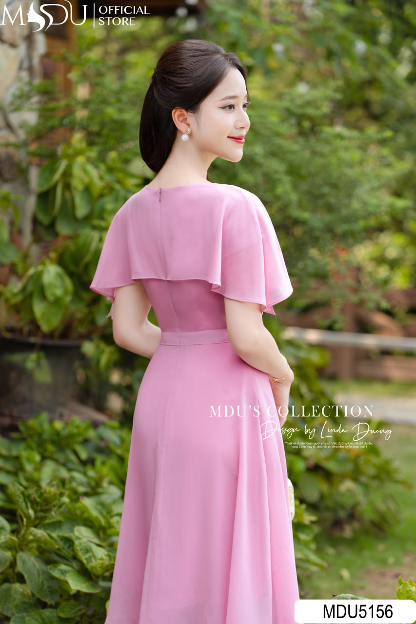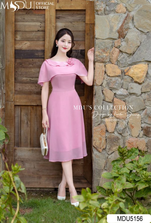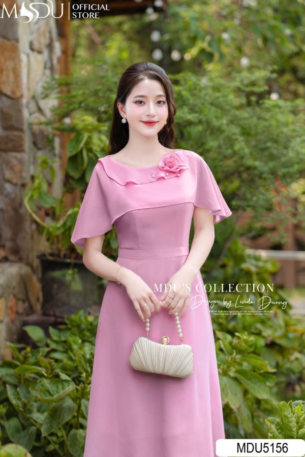 Design Highlights: MDU5156 is a graceful, flowy dress that balances contemporary style with a touch of vintage charm. The soft pink color combined with intricate flower detailing creates a sophisticated yet playful look. The draped shoulders and the elegant rosette on the waist lend an air of refined femininity. The flared, knee-length skirt offers both comfort and movement, perfect for any special occasion or a chic outing. This dress embodies the perfect blend of timeless beauty and modern elegance.