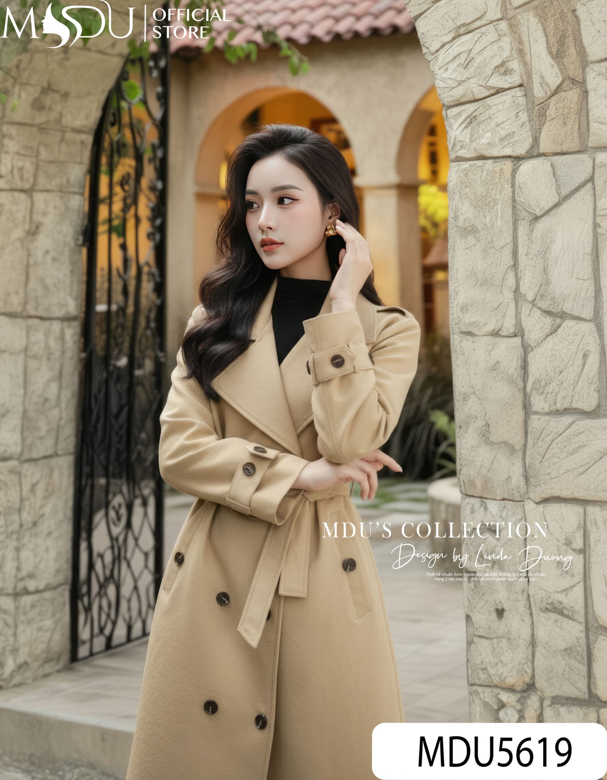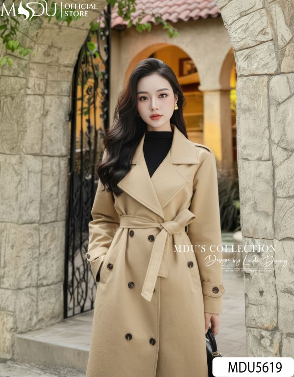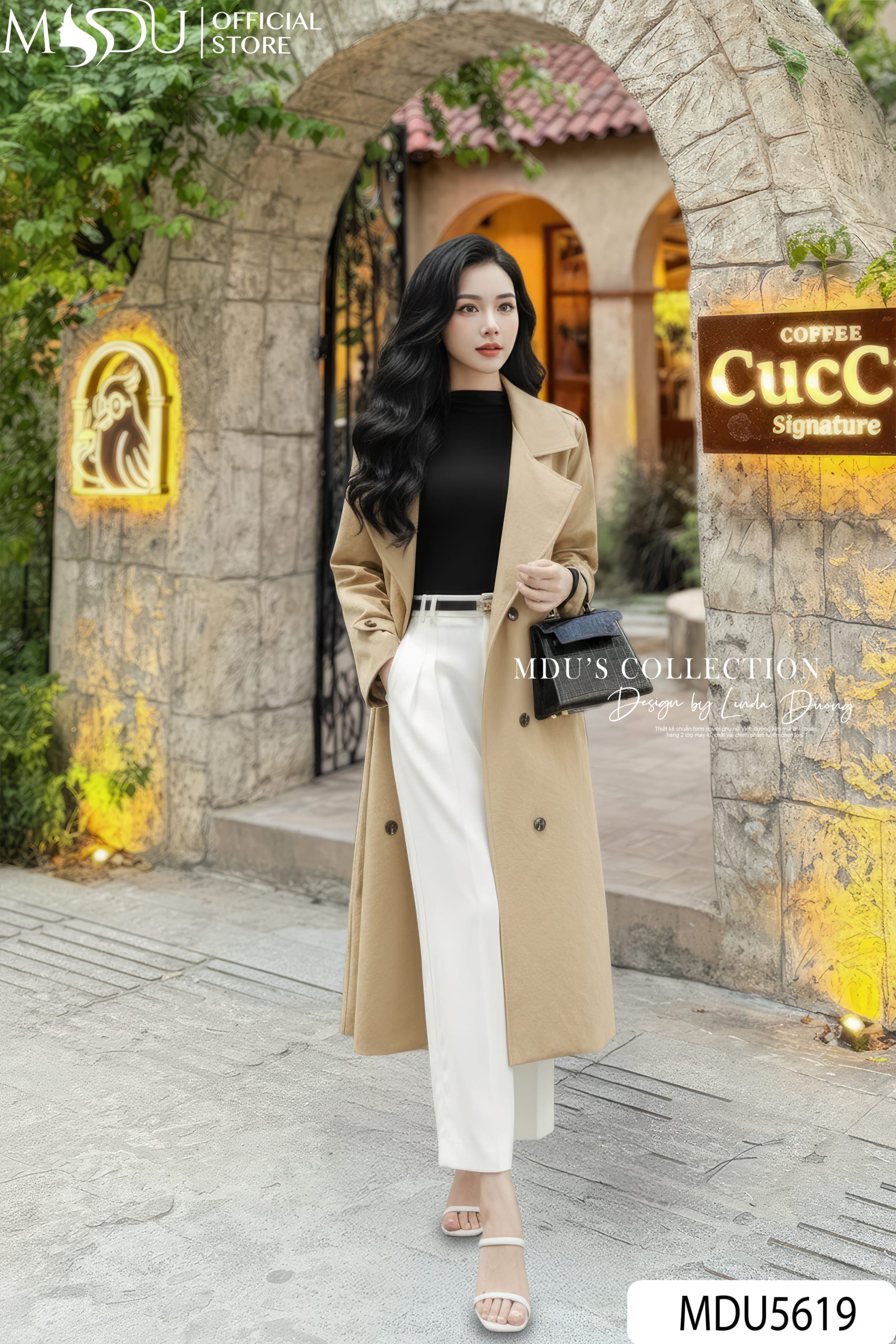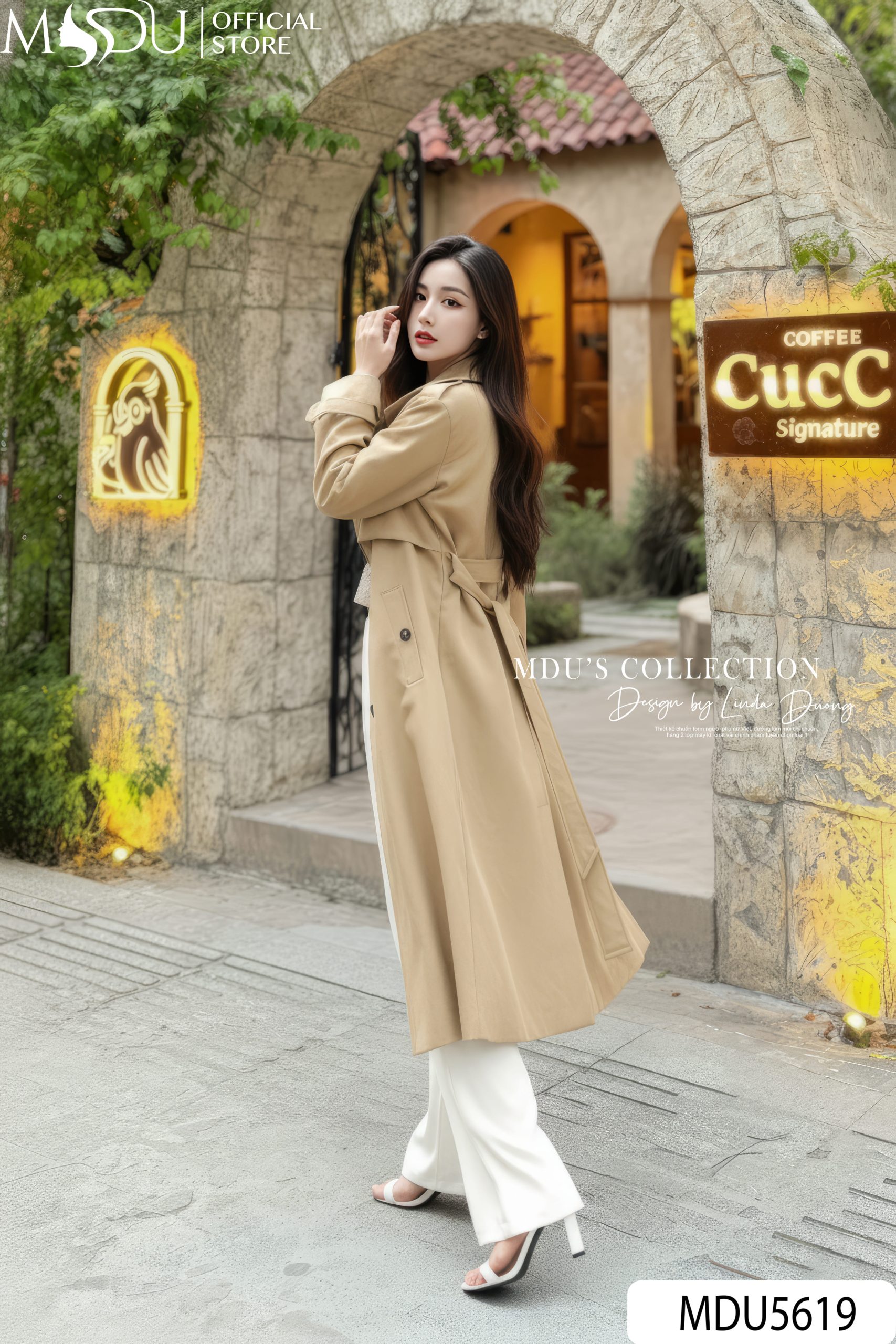 Design Highlights: The MDU5619 coat is the epitome of contemporary sophistication. Crafted in a neutral beige hue, it effortlessly combines modern tailoring with a chic, timeless silhouette. The double-breasted design and belted waist offer a refined structure, while the sleek, wide-legged trousers add a relaxed yet polished feel. This outfit is perfect for those who desire both comfort and high-end style, making it ideal for casual meetings, daytime outings, or evening gatherings.